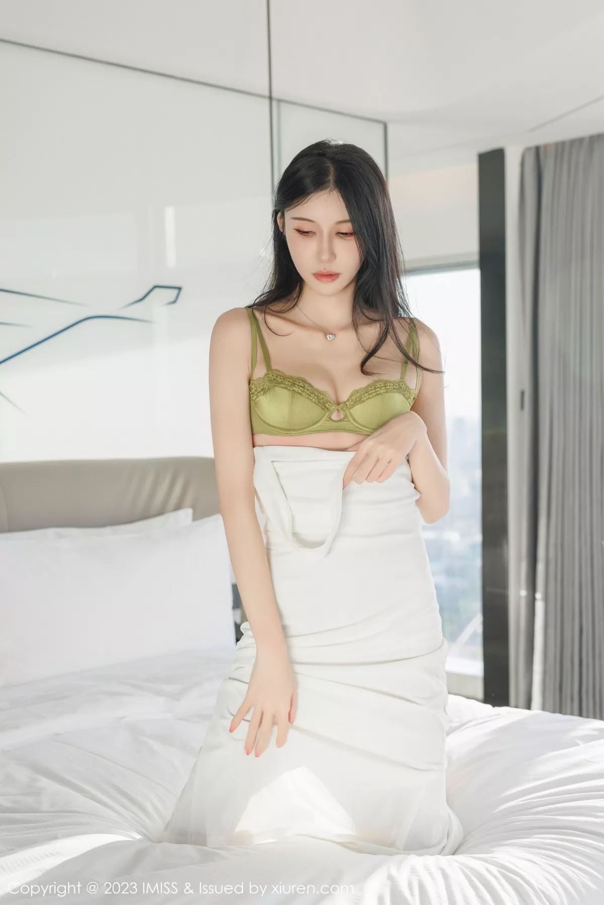 [IMISS爱蜜社]Vol.750_模特泥鳅鳅性感白色背带连衣裙露果绿内衣配超薄肉丝诱惑写真62P