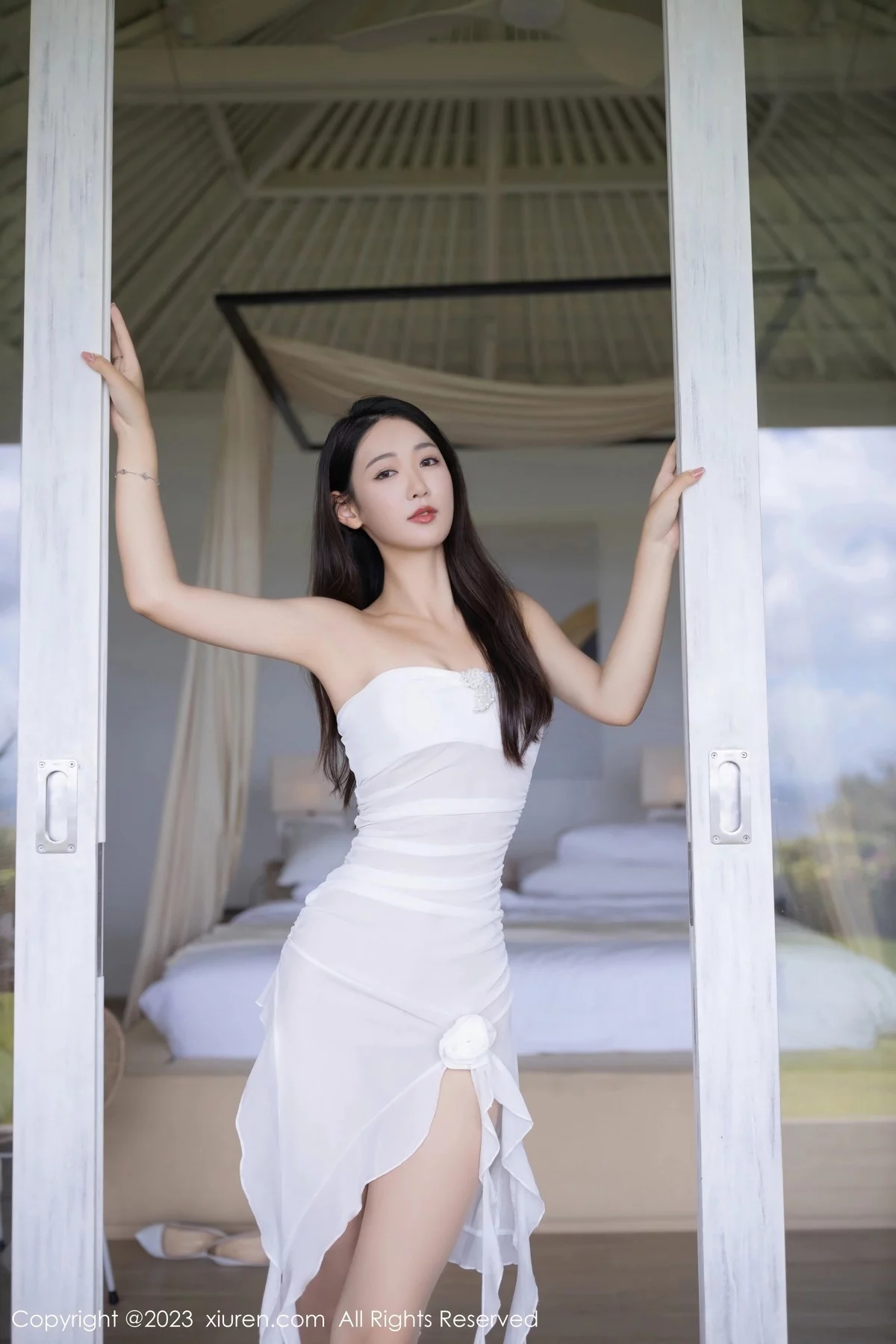[XiuRen秀人网]No.6780_模特唐安琪泳池边白色薄纱礼裙配超薄肉丝秀完美身材诱惑写真78P